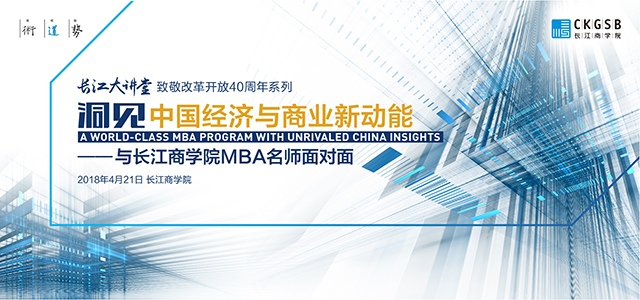 2018年4月21日下午,长江商学院北京校区将迎来“长江大讲堂”系列论坛之“洞见中国经济与商业新动能——与MBA名师面对面”。长江商学院MBA项目副院长、杰出院长讲席教授欧阳辉博士以及长江知名校友将做客长江大讲堂,在改革开放40周年之际,纵论中国经济与商业新征程。