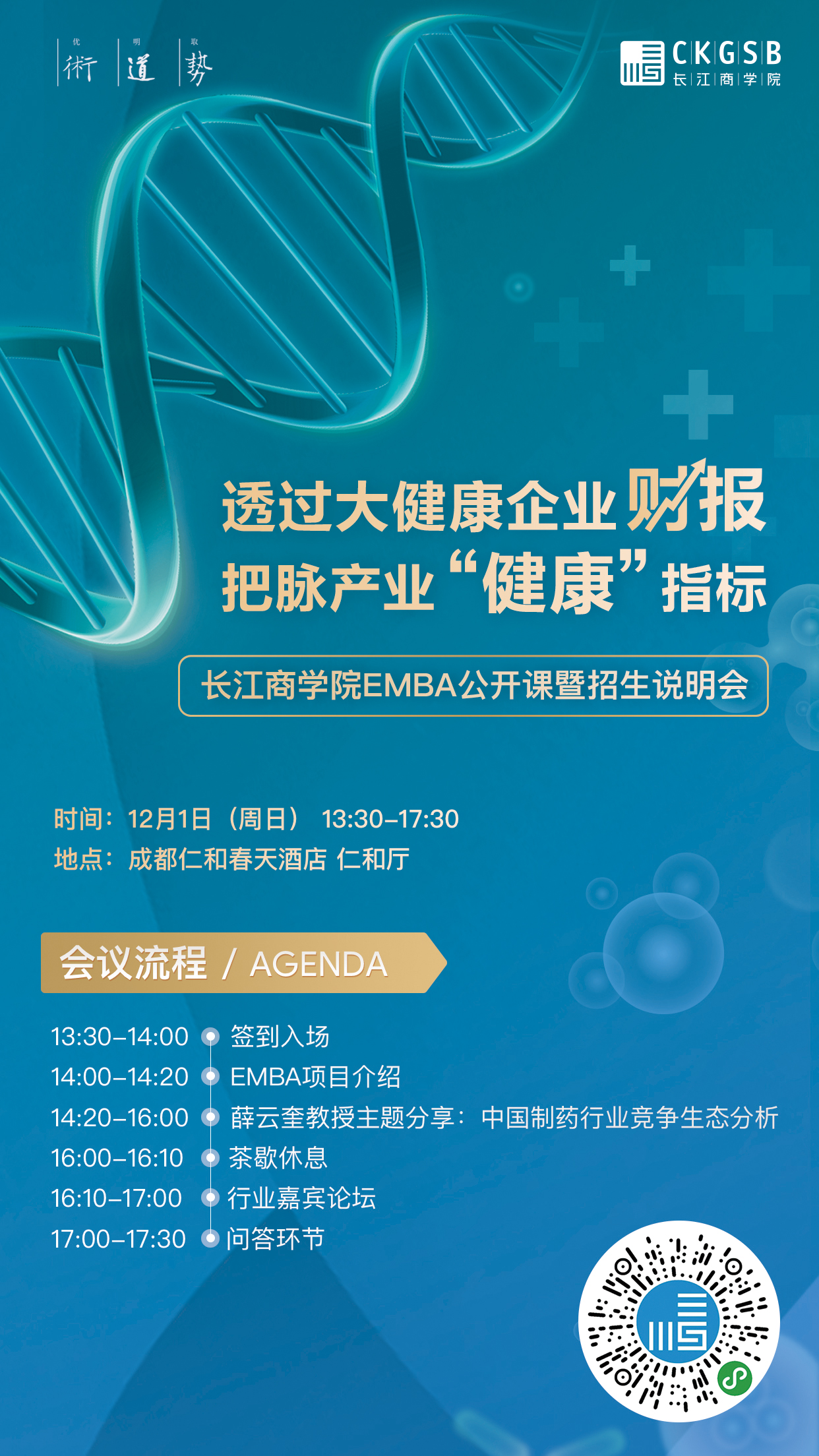 医药工业能否保住“朝阳产业”的良好发展态势?未来大健康产业将如何满足愈发多元化的市场需求?长江商学院会计学教授薛云奎博士,将在公开课中围绕其对中国制药行业竞争生态的深入研究,透过大健康企业财报,梳理产业的“健康”指标。