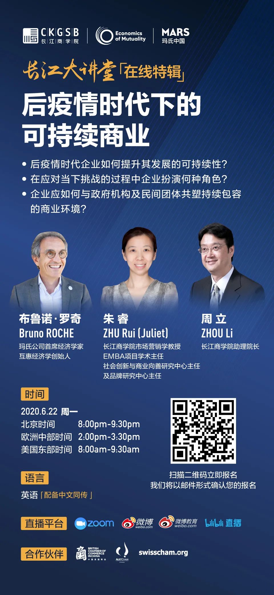 重磅 | 长江大讲堂《后疫情时代下的可持续商业》线上开讲!