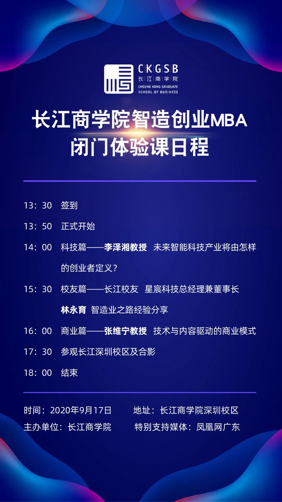 在此背景下,“长江商学院智造创业MBA体验营”将于2020年9月17日在长江深圳校区举办。本次课程将邀请相关领域专家讲师、行业高层与技术嘉宾,深度探讨智能制造领域企业整体战略、技术和运营的解决方案。