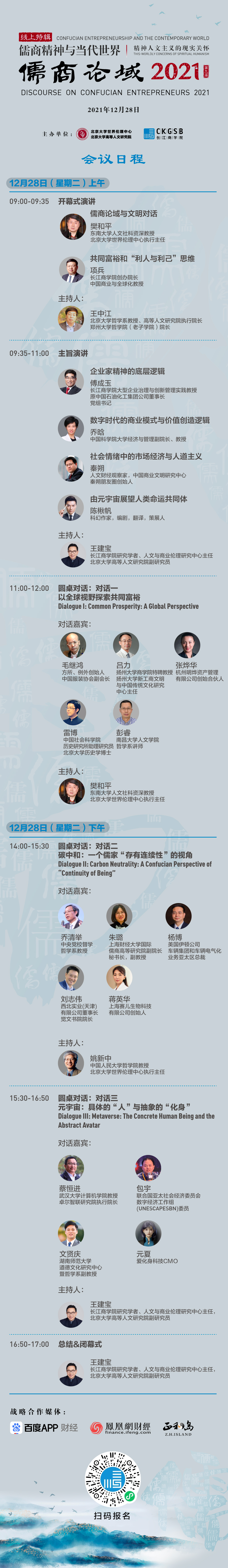 原儒不易,原商更难。对儒商之正本清源乃开显中国企业家精神的当务之急,是建立文化自信之盈科而进。回顾历史,富而教之是孔子心愿,富民富天下是孟子理想。小康社会从提出到建成,花了我们一代人的时间。共同富裕之路一样艰难而卓越。在效率与公平之间,我们如何行稳致远?在国家利益之上,如何实现天下大同?为此,本次会议设置的第一个话题是“以全球视野 探索共同富裕”(Common Prosperity: A Global Perspective’)。
