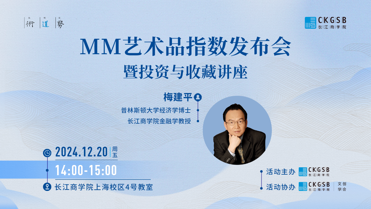 长江商学院金融教授梅建平将于 2024 年 12 月首次在上海发布 MM 全球印象派价格指数和全球当代艺术品价格指数,同时发布中华艺术品 2024 年度指数。