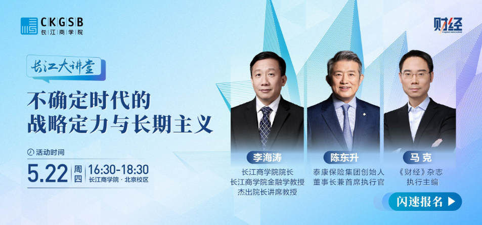 站在万米高空看世界,身处百年时空观察世界。过去十年,我们见证了曾经辉煌的企业在周期波动中黯然退场,也看到了一批坚守长期价值的企业逆势崛起。真正的分野,不在于资源多寡,而在于战略定力——当短期诱惑与长期价值冲突时,如何做出选择?当行业规则被颠覆时,如何重构竞争逻辑?当宏观环境充满变数时,如何保持组织韧性?第55期长江大讲堂邀请到泰康创始人陈东升博士与李海涛院长、《财经》杂志马克主编展开一场精彩的对话。