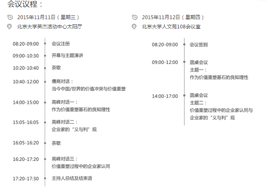 北京大学世界伦理中心与长江商学院期望通过讨论,把当今中国的价值冲突与价值重塑的复杂面向呈现出来,思考如何将价值重塑的根基建立在人类最不可消解的普遍能力——即“良知理性”之上。然后在充分理解市场经济的巨大“创造性破坏”能量之后,希望企业家能够分享自己对于财富与意义、经济与伦理之间复杂联系的切身体知;探讨企业家如何运用良知理性参与社会的价值重塑进程,建设未来人类社群和谐且繁荣的人文经济生活。