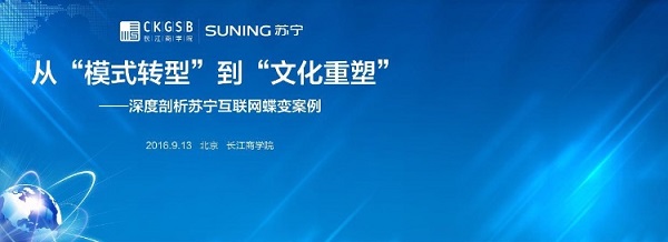 2016年9月13日,长江商学院将携手苏宁云商剖析苏宁6年转型路,解读企业文化对于传统企业转型的重要作用。欢迎您来到活动现场,聆听学者及企业家从战略、人才等不同角度的深度分析。