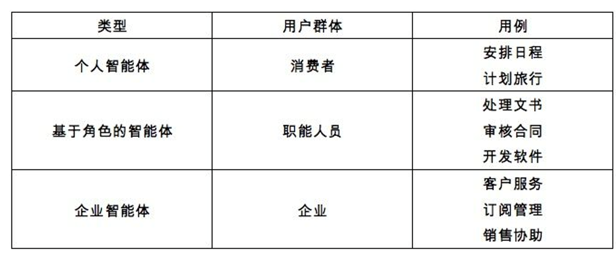 表 1 现阶段智能体产品的简要分类