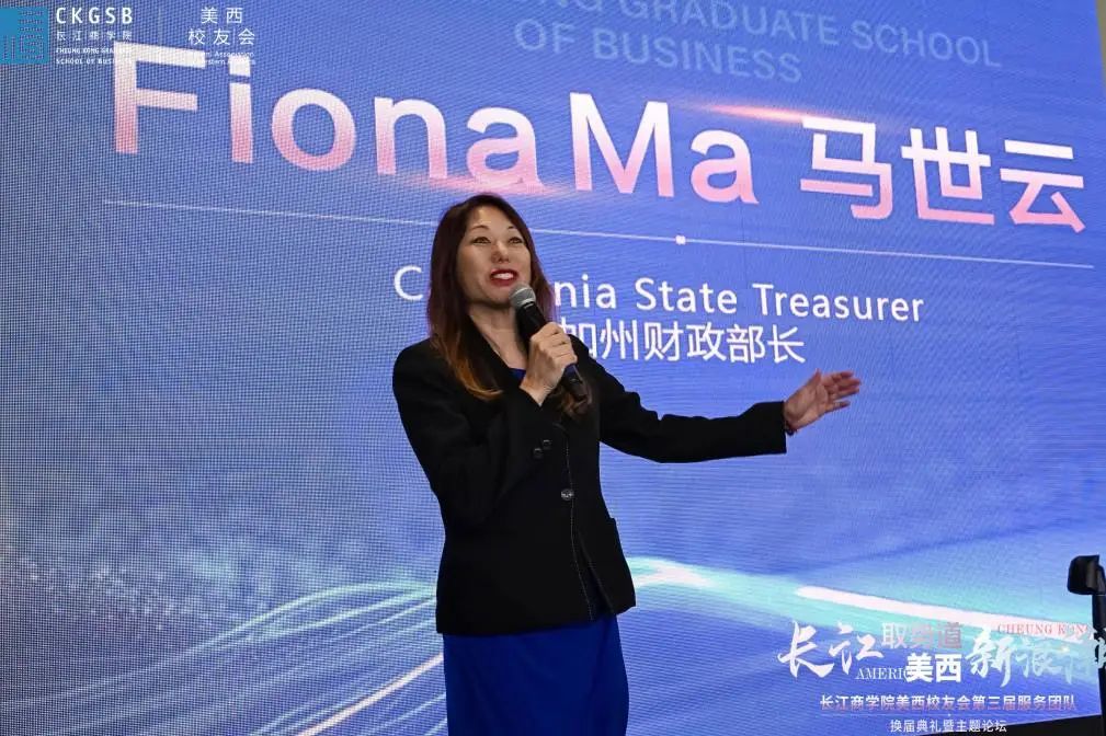 加州历史上首位亚裔女性财政部长菲奥娜·马(Fiona Ma)女士,亦在典礼上发表致辞。她详细解读了加州超过2000亿美元的年度财政收支概况、基础设施与教育专项债券发行计划,以及“加州住房金融局”推出的多项住房融资政策,为有意在加州拓展业务的长江企业家们提供了极具价值的一手政策资讯和财政指导。AG全球资本公司主席、加州投资论坛委员会成员Jason A. Gahar博士亦以其丰富的金融实战经验,向校友们展示了加州投资政策的前沿脉动与新兴赛道。