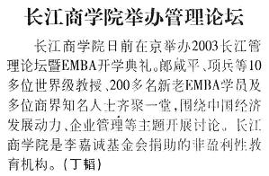 长江商学院成立于2002年11月21日,是教育部批准设立的拥有独立法人资格的非营利性中外合作办学机构,是国务院学位委员会批准的“工商管理硕士授予单位”(含EMBA和MBA),为国际管理教育协会(AACSB) 和欧洲管理发展基金会(EFMD)成员,并获得AACSB和EQUIS认证。学院总部位于北京,现设有工商管理硕士项目(MBA);高级工商管理硕士项目(EMBA);企业家学者项目;高层管理教育项目(EE)及全球独角兽项目。
