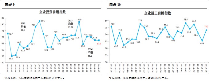 企业投资前瞻指数5月数据67.4,较上月略微下浮(图表9),数据仍高于50荣枯点,它表示大多数企业在未来6个月里仍会加大对固定资产的投资。