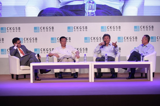 图8,长江商学院战略创新与创业管理实践教授、副院长廖建文博士(左一)主持“竞争2.0:商业生态圈”专题讨论