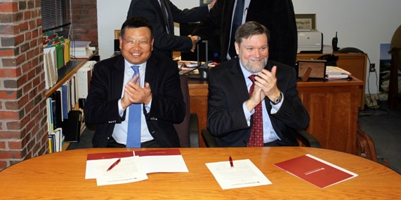 2015年3月17日 美国 马萨诸塞州剑桥市——长江商学院与哈佛肯尼迪学院(John. F. Kennedy School of Government)宣布签署战略合作协议,在学术研究与交流、知识传播,以及高层管理教育课程设计等层面协作创新,探寻促进全球性可持续发展和社会创新的最佳模式。长江商学院创办院长、中国商务与全球化教授项兵博士对此表示:“世界已经走到一个经济发展模式转变的关键时刻,通过知识的创造与分享来促进社会稳定与经济发展的可持续性,是长江商学院和哈佛肯尼迪学院的共同使命,希望两所院校强强联手,搭建全球性的研究与学习平台。”