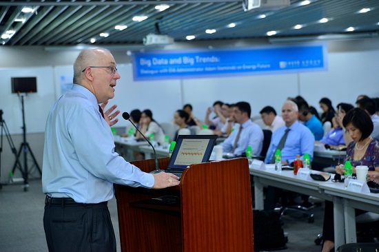 为分析中美两国在能源及气候变化领域的发展现状并展望在全球能源新格局中的合作前景,长江商学院和长策基金会共同主办“中美对话全球能源新格局”专题活动,特邀美国能源信息署(EIA)署长亚当·塞民斯基(Adam Sieminski)在长江商学院北京校区发表主旨演讲,并召开媒体见面会,与相关政府部门、企业和机构的领导、专家,以及海内外媒体进行深入交流,超过120位嘉宾莅临会场。