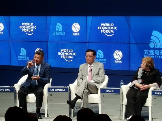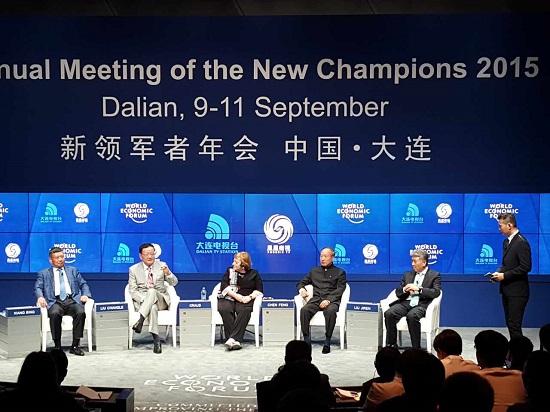 图1,2015年夏季达沃斯论坛(世界经济论坛新领军者年会)“中国企业家的国际崛起”论坛现场