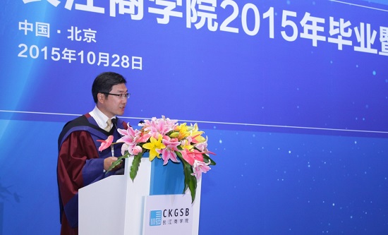 2015年10月28日 中国 北京——“我国取得的成就是巨大的,同时面对的挑战也是巨大的。我们长江人作为中国商界精英的代表,应该有什么样的担当和责任?这就是‘新商业文明’的核心内容——我们有责任也有能力在未来经济发展及社会进步中成为更加重要、积极、进步、稳定、阳光与和谐的力量!”长江商学院创办院长、中国商业与全球化教授项兵博士在“长江商学院2015年毕业暨秋季开学典礼”发表演讲,向全体长江学子表达了自己的期望。