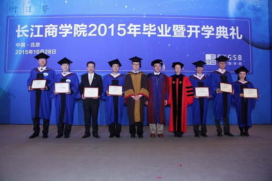 在典礼最后,滕斌圣教授宣读毕业生名单;走出校门的长江学子们从项兵院长和各位教授手中接过学位证书,与院长合影留念。长江商学院管理学教授阎爱民博士、运营管理学副教授藕继红博士、金融学教授黄春燕博士、市场营销学副教授荆兵博士、金融学与经济学助理教授李晓阳博士、市场营销学助理教授李洋博士、组织行为学副教授张晓萌博士、战略与创新访问助理教授王砚波博士等长将世界级教授也参与了学位授予仪式。