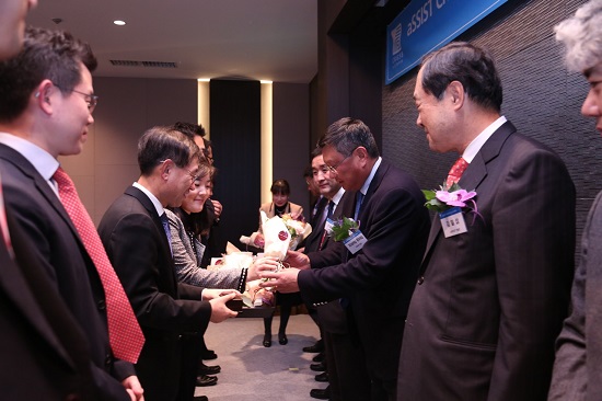 2015年12月03日 韩国 首尔——长江商学院推出的全新“中国商业EMBA——韩国领袖课程(K-EMBA)”在首尔正式启动。长江商学院创办院长、中国商业与全球化教授项兵博士和首尔科学综合研究生院(a Seoul School of Integrated Sciences and Technologies,简称aSSIST)院长金一燮分别致欢迎辞并发表演讲。韩都衣舍集团创始人及董事长赵迎光、唯品会韩国公司代表理事辛龙山、新丝路模特机构董事长李小白,和朗姿股份有限公司董事长申东日四位长江校友为即将进入K-EMBA课程学习的50多位新同学分享宝贵经验;并与项兵院长和金一燮院长一同为新生佩戴两所院校的校徽。