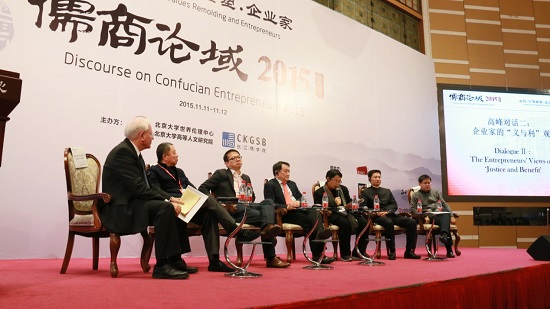 在“企业家的‘义与利’观”专题讨论中,建业住宅集团(中国)有限公司董事长胡葆森提出“大商至诚”的主张,他说:“商人不主动承担社会责任,因为税收、就业只是基本义务,能否承担更多的社会责任则是衡量伟大企业和伟大企业家的标尺。” 长江商学院战略学教授、首尔国立大学荣誉教授赵东成指出,“义”与“利”是两个维度,并不是平行的概念。“‘义’表示一种方式,‘利’代表了最终结果。企业家应通过‘义’来获得‘利’。” 北京四海孔子书院院长冯哲提醒,企业对利益的追逐,很容易把正常需求变成危险的欲望。他谈到,基于“仁”,才能谈“义”和“利”;对于二者的辨识,需要唤醒善性与良知,才能让企业家完成真正的修炼。克劳斯·M·莱辛格教授(Klaus M. Leisinger)对此表示:“如果把‘义’与‘利’的鸿沟弥合,就能够确保二者的兼得,当然在短期和长期的取舍中可能会面临困局;全世界所有成功企业家都应当超越这一切。” 利马赫中国区董事首席代表刘志伟认为:“义利相通、知行合一——过了几百年,我们在某些方面仍要向古人学习;特别是做企业的,在民族大义前,‘义’字一定要当头。”中国商业文明研究中心发起人秦朔举例说:“为什么苹果手机的价格很高却仍能获得用户的接受和喜爱?因为用户更看重产品和企业给他们带来的价值——相比之下富豪很多,但能造福消费者、创造优秀产品的却很少。”中国文化产业投资基金管理有限公司总裁、长江校友陈杭分享了自己的人生信条:“忍辱、敬畏、精劲、菩提,是我个人人生的八字信条,其代表了宽容、敬畏心、牺牲、回报等精神。”