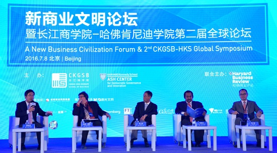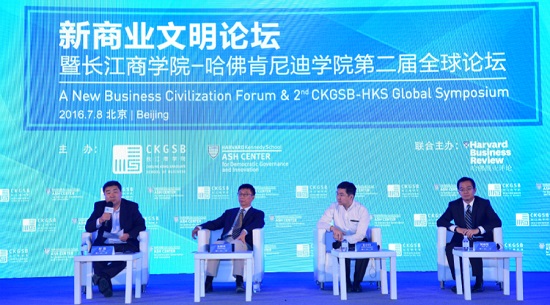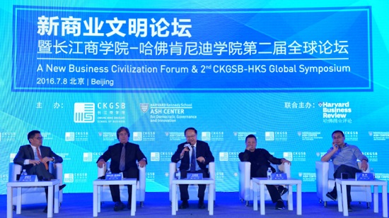 2016年7月8日 中国 北京——“全球视野和全球责任担当,是新商业文明的核心部分。未来中国企业家要具备更加广阔的全球视野,肩负起全球责任,实现全球担当,在解决人类文明发展过程中遇到的全球问题上做出更大贡献。以全球应对全球的时代已经到来。为了实现这个梦想我们需要一种新视野、新思维、新格局、新境界与新的价值取向。” 长江商学院创办院长、中国商业与全球化教授项兵博士出席今日于北京举办的“新商业文明论坛暨长江商学院-哈佛肯尼迪学院第二届全球论坛”并发表开幕致辞时说。