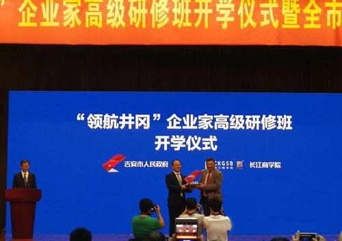 “领航井冈”企业家高级研修培训项目计划从2017年起,每年举办1期 “领航井冈”企业家高级研修班,每期选拔吉安当地企业家学员30名,用5年时间共培养本土优秀企业家150名,学员来源以工业企业为主,兼顾新兴产业企业。江西省省委常委、统战部长陈兴超在贺信中表示,“与长江商学院强强联手开展企业家研修培训,对传播赣商文化、弘扬长江精神具有重大意义,必将为推动吉安发展,乃至江西绿色崛起、兴赣富民汇聚更多的人才”。