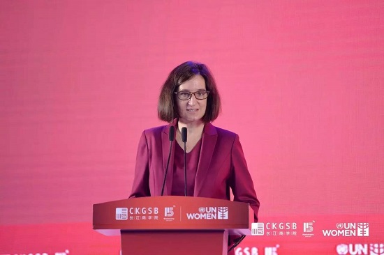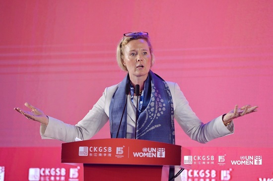 联合国妇女署亚太区妇女经济赋权政策顾问Asa Torkelsson 博士代表联合国妇女署为论坛致欢迎辞,她提到:“在每个国家,在职业发展路径中,女性在管理层所占的比例都很低,,尤其是在高级管理层。 所以, 能见到越来越多的女性在中国不同的行业担任领导者,就如今天在座的各位女性嘉宾,是非常鼓舞人心的。今天我们不仅有机会探讨如何支持女性领导者和赋权女性员工, 也有机会了解不同的机构和领导者如何带来改变,培养性别视角。”
