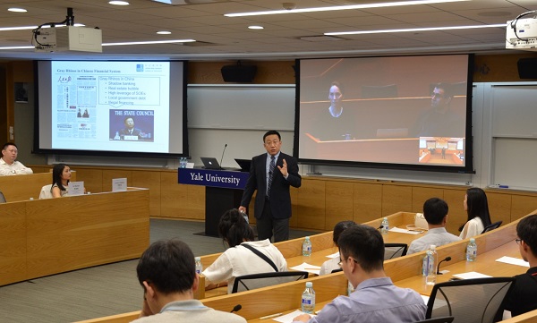 2017年9月14日 中国 北京 ,长江商学院金融学教授、杰出院长讲席教授、MBA项目副院长李海涛做客耶鲁北京中心,就如何防范与应对金融危机对话耶鲁大学教授,原奥巴马首席经济顾问Andrew Metrick。Andrew Metrick教授就中国货币政策以及中国金融风险等问题与李海涛教授展开互动。李海涛教授认为,虽然中国金融体系暗潮涌动,但得益于中国经济增长,现阶段爆发类似2008年规模金融危机的风险机率并不高。针对中国经济“灰犀牛”问题,李海涛教授表示,目前中国政府已经在通过相应解决方案努力化解风险。