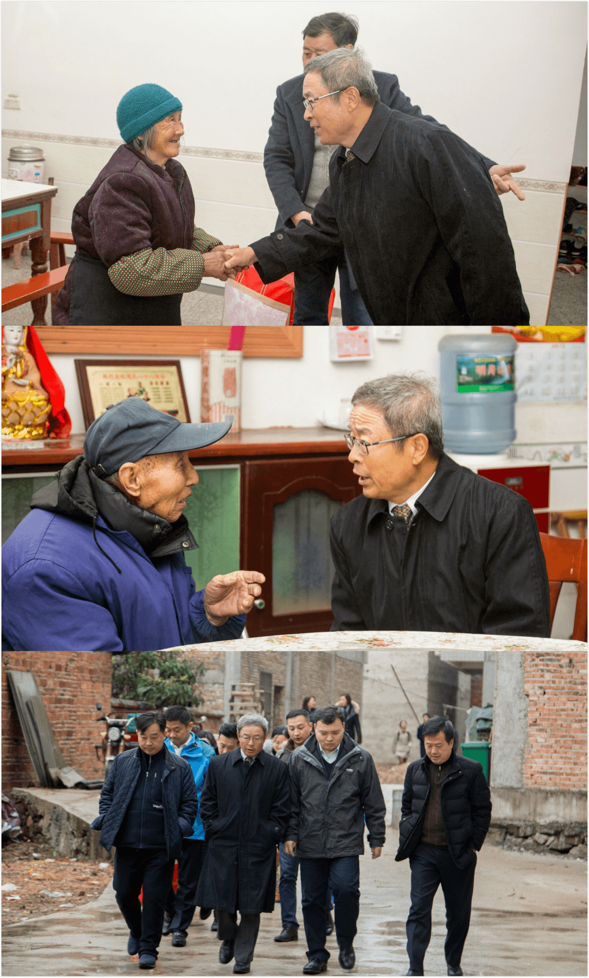 1月6日长江商学院-遂川精准扶贫公益项目启动仪式前,长江商学院管理学教授、政府关系及校友事务副院长阎爱民,长江商学院政府关系及校友事务主任杨晓燕,长江商学院市场公关部及人力资源部主任史佳红等十余位长江商学院老师、校友及“领航井冈”企业家高级研修班学员,在吉安市市委常委、副市长刘振国,遂川县县委副书记、县长肖凌秋,遂川县县委常委、副县长杨亮等同志的陪同下,一同调研了江西省吉安市遂川县盆珠村,深入了解扶贫情况,并前往当地看望留守老人和儿童。
