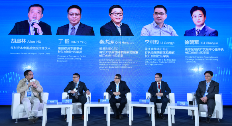 红杉资本中国基金投资合伙人、长江EMBA校友胡启林,康曼德资本董事长、长江京东金融科技学堂首期班学员丁楹,恒昌利通CEO、清华大学苏世民书院荣誉院董、长江京东金融科技学堂首期班学员秦洪涛,富民银行行长助理兼首席战略官、长江EMBA校友、长江京东金融科技学堂首期班学员李刚毅,南京金融资产交易中心董事长、长江EMBA校友长江京东金融科技学堂首期班学员许朝军等嘉宾从互联网金融、传统金融多个角度围绕中国互联网金融行业面临的挑战,未来的发展机会、科技赋能金融创新开启“科技连接金融创新”巅峰对话。大家一致认为,金融科技和金融创新迎来历史性机遇。谈及金融监管,李刚毅认为:“金融创新离不开金融监管,企业一定要主动融入监管、拥抱监管。要坚持两个原则:原则一是坚守监管的高压线在哪里都不能触碰的底线;原则二是一定要做好投资者的保护,不要去侵害投资者利益。”谈及科技赋能金融的未来场景,徐超军认为,金融科技将提高效率,降低所有融资的成本;丁楹认为,人工智能、机器学习等技术应用到数据分析,有助于量化投资,提高效率。谈及区块链的商业应用,李刚毅认为票据、供应链金融、支付领域及信用成本较高的一些领域可能容易切入。徐朝军认为,区块链主要是去中心化、信任机制和智能合约,这将对未来商业社会都带来颠覆性变化;胡启林认为,区块链在场景端和应用端普遍看好的两个方向是:智能合约与供应链金融。