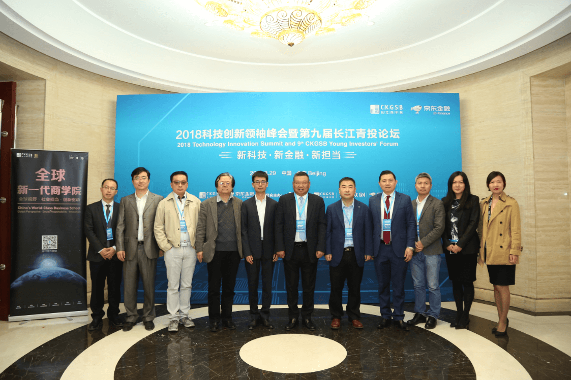 (与会嘉宾合影。左六为长江商学院创办院长项兵,左五为京东金融CEO陈生强)