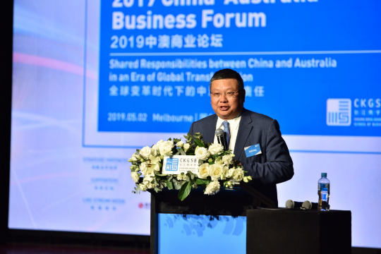 2019年5月2日 澳大利亚墨尔本 以“全球变革时代下的中澳共同责任”为主题的长江商学院2019中澳商业论坛日前在澳大利亚墨尔本举行。论坛汇聚中澳两国乃至全球的政、商、学各界领袖,共同解读中澳经济新形势,分享中澳商业新机遇,探索全球大变革之下中澳需承担的共同责任。“中澳互为重要的合作伙伴,两国在维护地区和平稳定,促进共同发展方面,拥有广泛的共同利益。双方的共同利益远远大于分歧。推动中澳关系健康稳定发展,符合两国人民的共同利益,这也是两国工商界和有识之士的共识。”中国驻墨尔本总领事龙舟高度评价此次论坛,“论坛上,中澳两国政、商、学各界人士,围绕全球变革背景下的中澳关系与合作发展开展讨论,并为深化中澳经贸投资合作建言献策。谨向在座长期以来推动中澳关系发展的各界人士表示由衷感谢。”