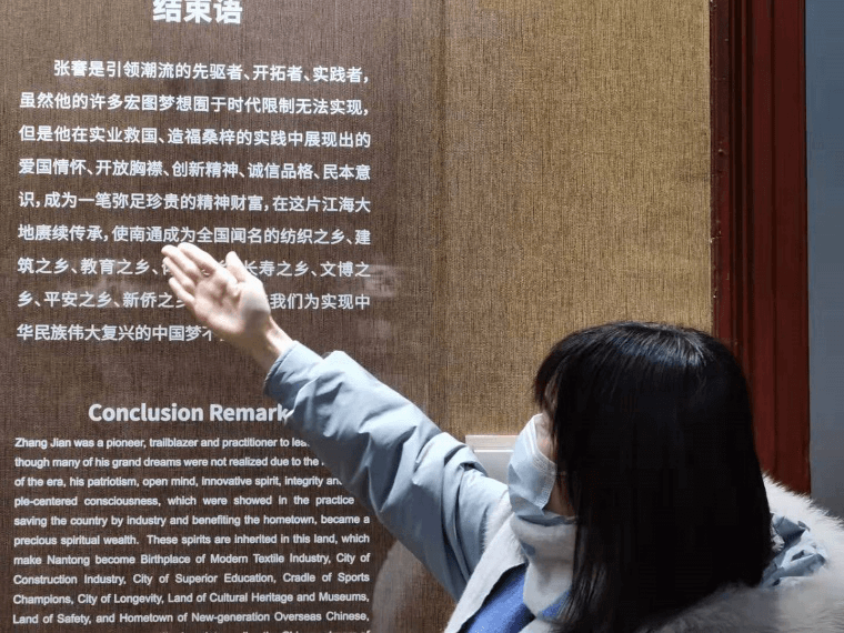 参观时,南通博物苑的解说员陆苒苒对张謇的生平做了详细介绍;当遇到一些疑难问题时,博物苑的徐宁研究员做了补充说明。两位教授特别对于习近平总书记和刘鹤副总理比较关心的企业家社会责任和循环经济理念等问题做了进一步深入探讨。