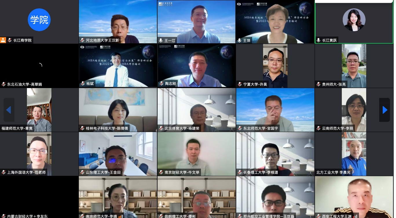 2022年7月27日,由全国工商管理专业学位研究生教育指导委员会(以下简称“全国MBA教指委”)秘书处、长江商学院共同组织的第四期“西部MBA师资培训”公益活动在线上顺利举办。此次培训以“数据、模型与决策”师资研讨为主题。全国MBA教指委委员兼秘书长杨斌教授,长江商学院经济学及人力资源学教授、副院长王一江,战略学及经济学教授、副院长陶志刚出席本次培训,来自我国七十余所院校的80名教师参加了此次课程培训。