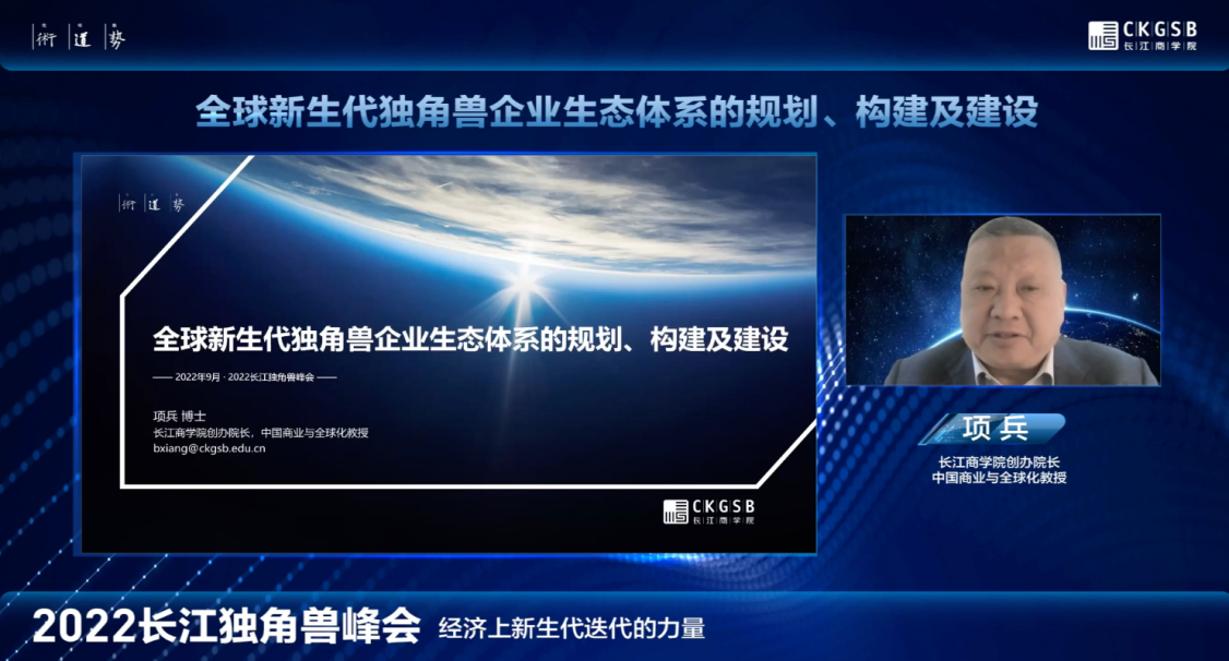 长江商学院创办院长、中国商业与全球化教授项兵以《全球新生代独角兽企业生态体系的规划、构建及建设》为主题发表开幕演讲。项院长表示,改革开放以来,中国社会经济发展取得了巨大成就,令全球瞩目。其中,持续不断的产生“经济上新生代迭代的力量”是重要推手之一,也是一个值得深度挖掘与传播的中国元素。“经济上新生代迭代的力量”指在经济发展过程中新的大型企业和新富豪不断出现及不断迭代的现象,其具备以下两个主要特征:一是新生力量的涌现,即新的大型企业和新的富商持续不断诞生;二是新生力量快速迭代,即已上榜企业和富豪的排名不断变动迭代。面向未来,通过培育“经济上新生代迭代的力量”,将持续为年轻人提供更好的上升发展通道,打破阶层固化,从而推动经济发展、共同富裕及社会和谐稳定。在项兵院长看来,所谓新生代独角兽企业应具备三大特征,即更具全球责任、高度重视社会目的和功能以及更具长线思维。长江商学院大风流创新举措之一,就是为全球培养新生代独角兽企业,并打造一个可以培养全球新生代独角兽企业的生态体系,从而为全球经济发展和社会进步贡献来自中国的解决方案。
