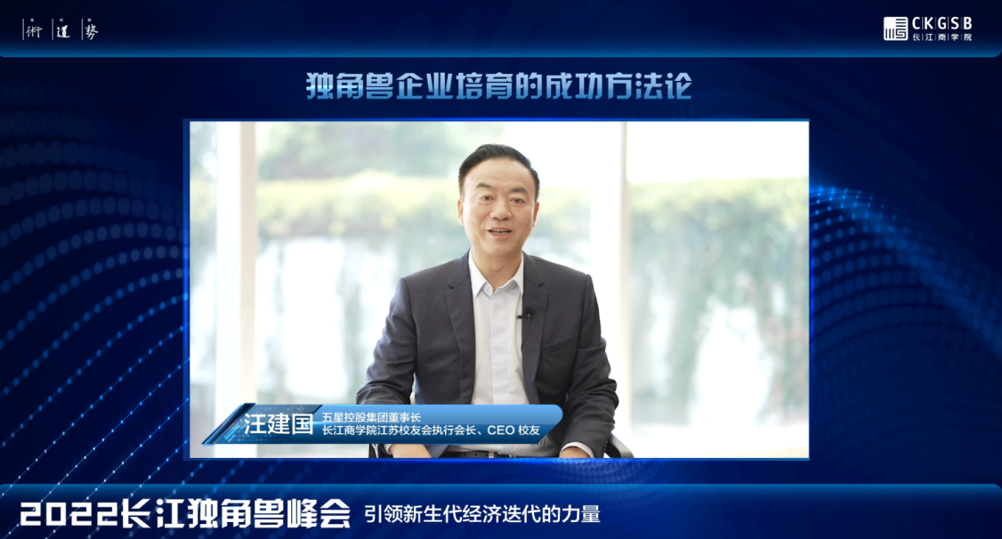下午,五星控股集团董事长,长江商学院江苏校友会执行会长、CEO校友汪建国以《独角兽企业培育的成功方法论》为主题进行主旨演讲。他认为,独角兽通常是新兴事物的代表,它们代表了先进生产力,对创新和创造性要求更高。投资是投未来,因此独角兽多的地方、行业以及产业,也在一定程度上代表着未来的趋势。对于企业家而言,方向比努力重要,选择比勤奋重要,把握趋势才能把握未来。正如巴菲特所讲,要选择长长的坡道,厚厚的白雪,这样滚雪球就容易很多。
