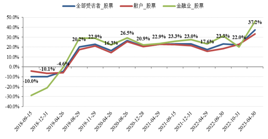 投资者对股票和股票型基金的投资意愿大幅提高,愿意投资股票、股票型基金的净增加人数占比为63.3%,比上期提高21.7个百分点。