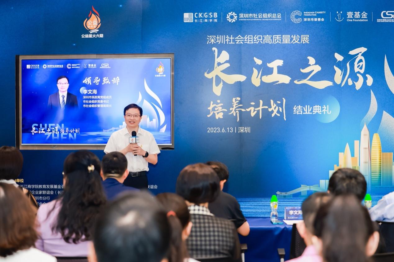 2023年6月13日,深圳 公益星火六期·深圳社会组织高质量发展“长江之源”培养计划(以下简称长江之源培养计划)毕业典礼在长江商学院深圳校区隆重举行。来自深圳多个部门及领域的领导、专家学者、长江校友与60名学员齐聚一堂,共同为这场12个月的跨界探索之旅画上圆满句号。