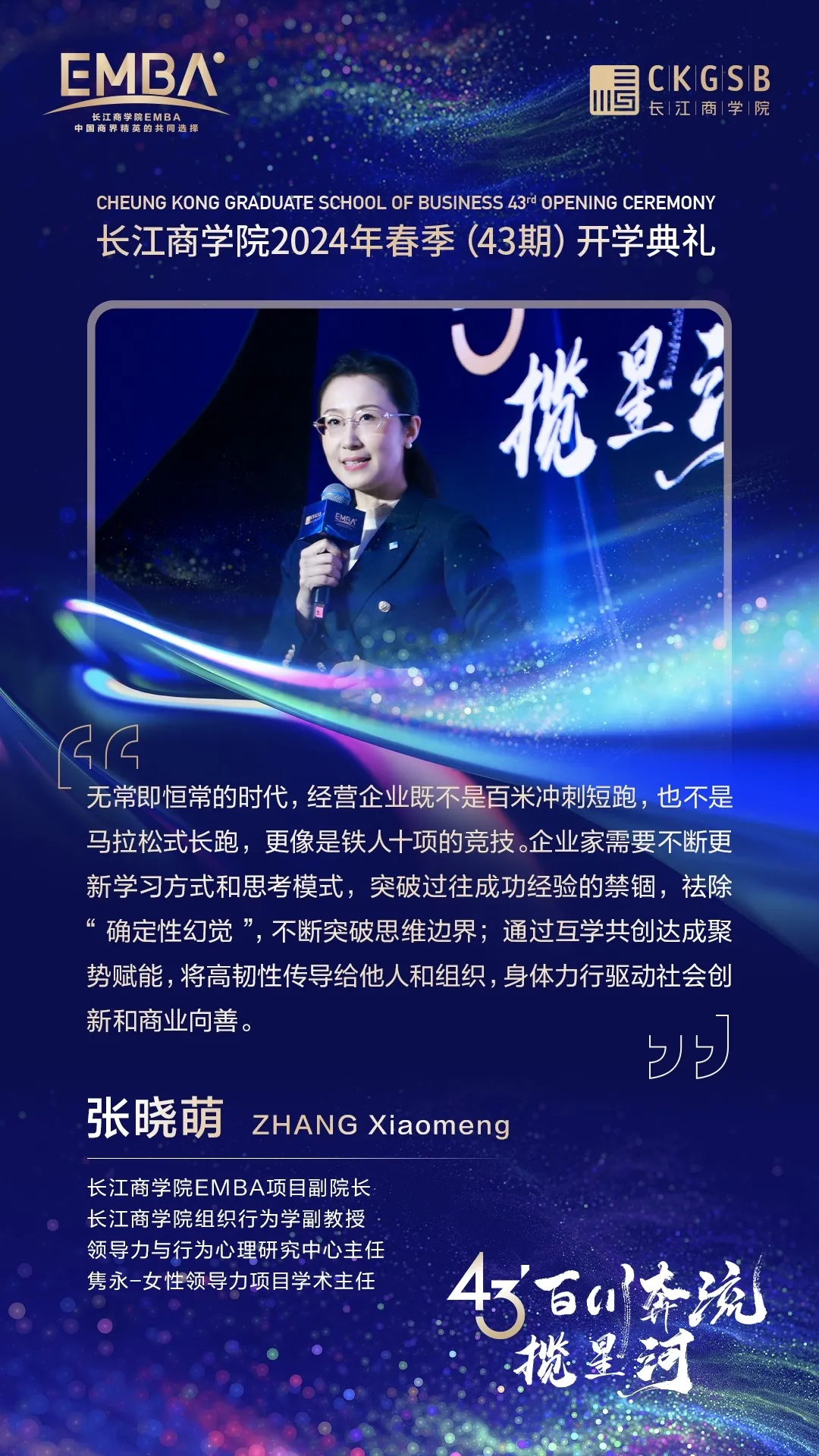 祝愿新生在长江商学院收获真知,收获挚友,为商业的持续创新与社会的长足发展贡献中国企业家的力量。