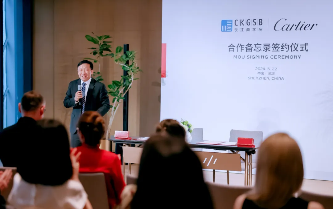 2024年5月22日,长江商学院与卡地亚合作备忘录签署仪式在深圳举行。长江商学院院长、金融学教授、杰出院长讲席教授李海涛,卡地亚全球总裁兼首席执行官思礼乐 (Cyrille Vigneron) 出席签约仪式,共同签署合作备忘录。