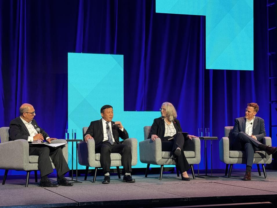 长江商学院院长、金融学教授、杰出院长讲席教授李海涛受邀出席,并代表亚洲地区商学院在“地缘政治与商科教育领导力”圆桌对话中发表了精彩观点。该环节由AACSB理事会主席、埃及开罗美国大学商学院院长Sherif Kamel主持,深入探讨了教育机构如何在复杂的社会政治环境中有效应对挑战,推动开放对话机制的构建,并积极适应全球格局的动态变化,从而保持机构的韧性与战略前瞻性。瑞士IMD商学院院长David Bach和加拿大多伦多大学罗特曼管理学院院长Susan Christoffersen分别代表欧洲、美洲地区商学院在对话中分享观点。