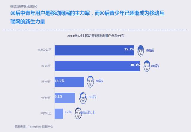 我們從這個圖可以看出,80、90后群體比剩下所有群體加起來的人數還要多。所以你的產品服務的人群不同,差別就會非常大。比如《小時代》是樂視拍的第一個電影,很多人可能對這部電影不感興趣,無法理解為什么這個片子會有那么高的票房。實際上是因為這個產品針對的人群不是你。