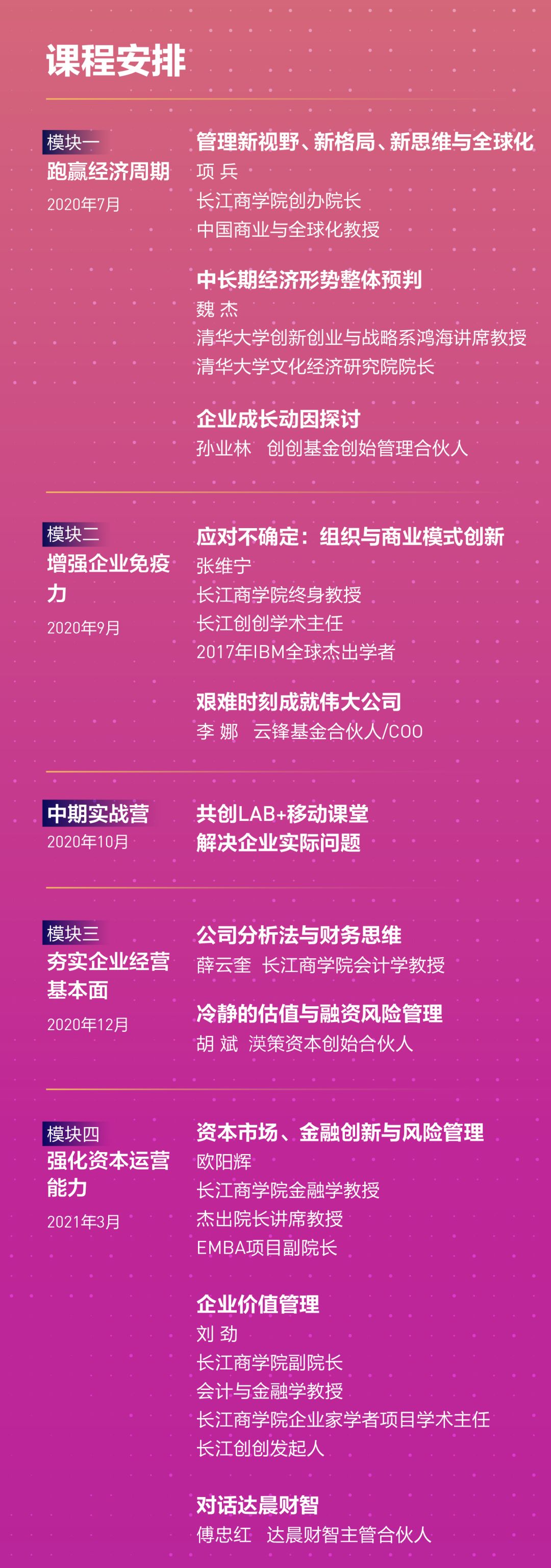 招生對象:已完成A輪融資的頭部創業企業核心創始人、CEO;有產業創新升級需求的長江校友