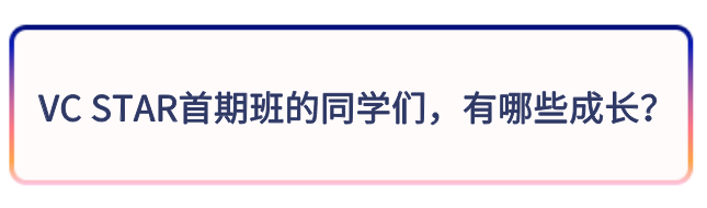 這個項目之所以取名為VC STAR,是因為我們深信,每一位同學都是耀眼的星辰,都是有能力和意愿穿越周期,成就偉大企業的長期主義者。