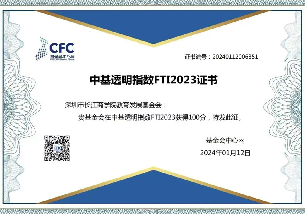 長江商學院教育發展基金會(CKEDF),是一家于2016年2月在深圳市民政局正式登記注冊的非公募基金會組織,已取得 “非營利組織免稅資格認定”和“捐贈稅前扣除資格”兩項財稅認證,并獲評深圳市社會組織4A等級,2021-2023連續三年榮獲“中基透明指數FTI”滿分100分。