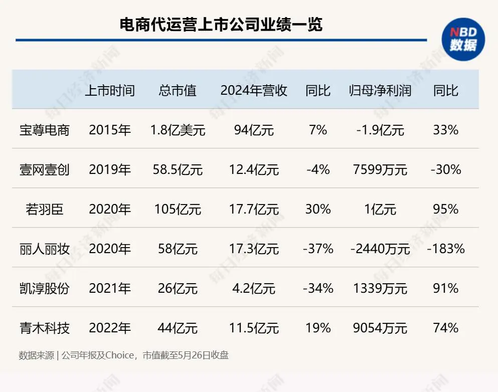 4月底,若羽臣公布2024年年報,公司營收增長30%,歸母凈利潤大漲95%,成為2024年最賺錢的電商代運營上市公司。近一年,若羽臣股價累計上漲超400%,也成為了行業中最被資本市場看好的公司。