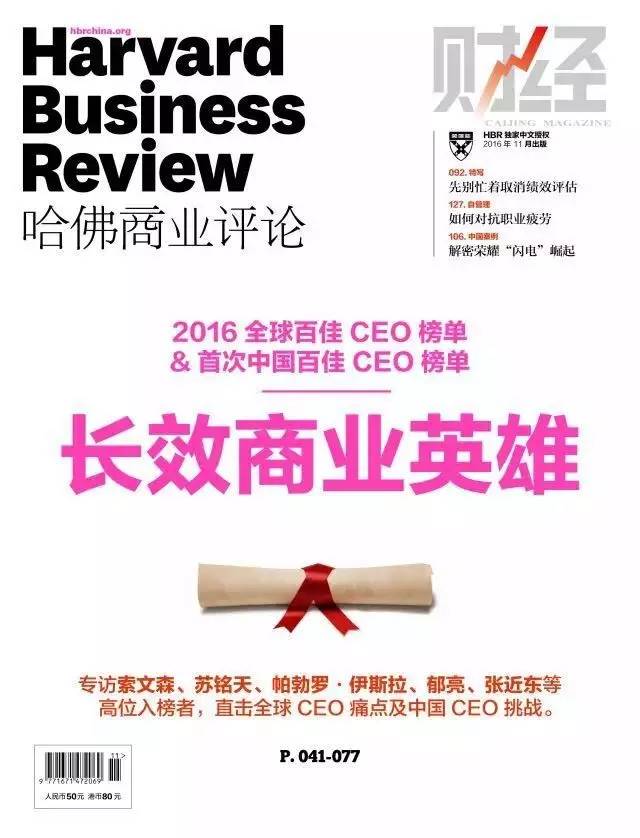 2016年,《哈佛商業評論》中文版首次引進“全球百佳CEO”的研究體系和客觀評估方法,與英文版研究團隊合作發布“中國百佳CEO”榜單。選擇繼承與延續英文版的精神,根據客觀數據而非名聲或傳聞來判斷企業家的表現,以檢驗中國企業領導者的長期績效。