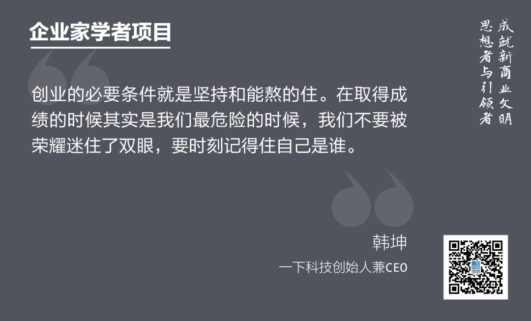 ▲一下科技創(chuàng)始人兼CEO韓坤主題分享:《一下科技發(fā)展之路》