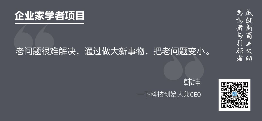 2013年,秒拍上線,成為微博官方獨(dú)家短視頻應(yīng)用;2015年7月,小咖秀登頂APP Store,掀起全民對(duì)嘴表演的風(fēng)潮;2016年,一直播上線并成為微博官方戰(zhàn)略合作伙伴;2018年,波波視頻一躍成為短視頻賽道上用戶增速最快的APP。賈乃亮、趙麗穎、TFBOYS等明星高管相繼入職一下科技,為其注入強(qiáng)勁娛樂(lè)勢(shì)能。目前,秒拍月度用戶已超過(guò)3.1億,視頻日播量峰值達(dá)30億,波波視頻人均在線時(shí)長(zhǎng)達(dá)到66.9分鐘,居行業(yè)第一。在取得這些成就的路途上也有困境和挫折,韓坤先生的秘訣是:“老問(wèn)題很難解決,通過(guò)做大新事物,把老問(wèn)題變小。”