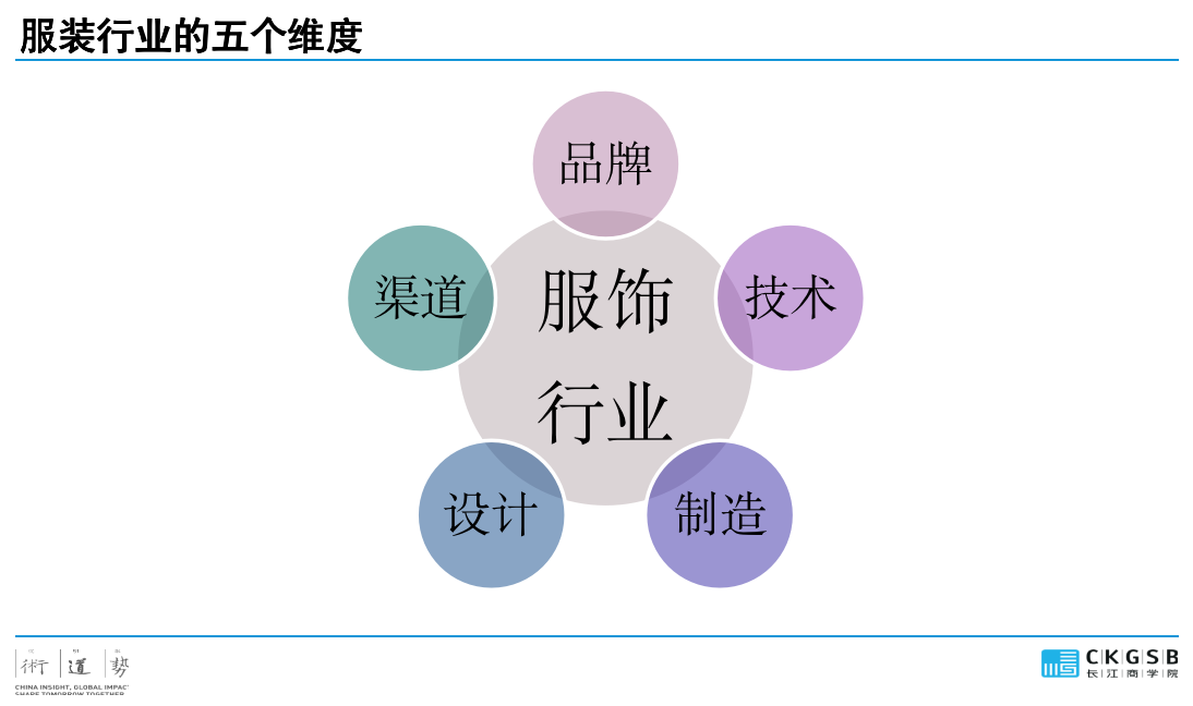 在服裝產業增速趨緩,市場競爭愈加激烈、產業結構分散的局面下,服裝企業該如何發力突出重圍做大做強?劉勁教授在此提出五個思考維度:品牌、渠道、設計、制造、技術。