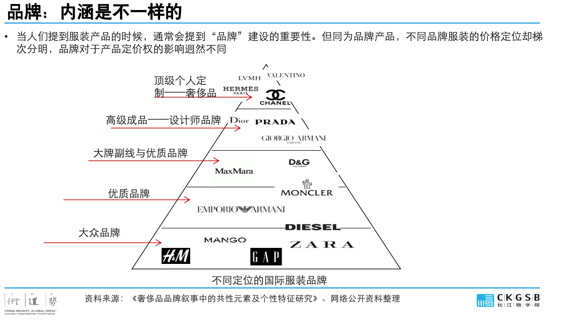不同的品牌內涵賦予了不同的品牌價值,從而造成了品牌之間的格差,從大眾平民品牌至頂級奢侈品品牌層級、定價梯次分明。