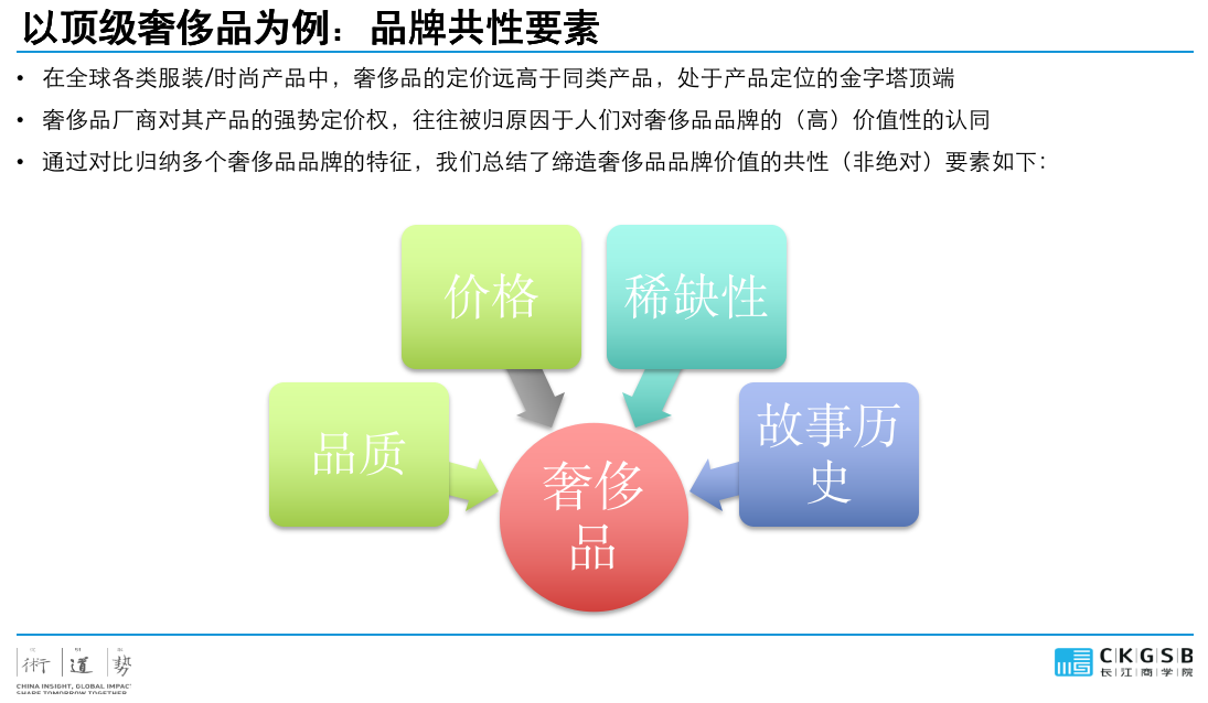 以奢侈品為例,所有成功的奢侈品品牌往往以四個共性要素為基礎構筑品牌價值: