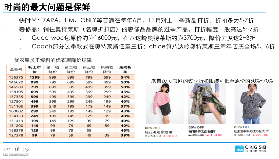 隨著時代的發展、各種新事物的誕生,時尚的風向標往往不可預知,流行往往容易過時,過時往往又容易重新流行。在快時尚行業,新產品上市后的6月、11月即進行打折,而在奢侈品行業,過時的產品往往被銷往奧特萊斯,通過打折來促進大眾對過時商品的再消費。如何對時尚進行“保鮮”變成了服裝企業的核心問題。